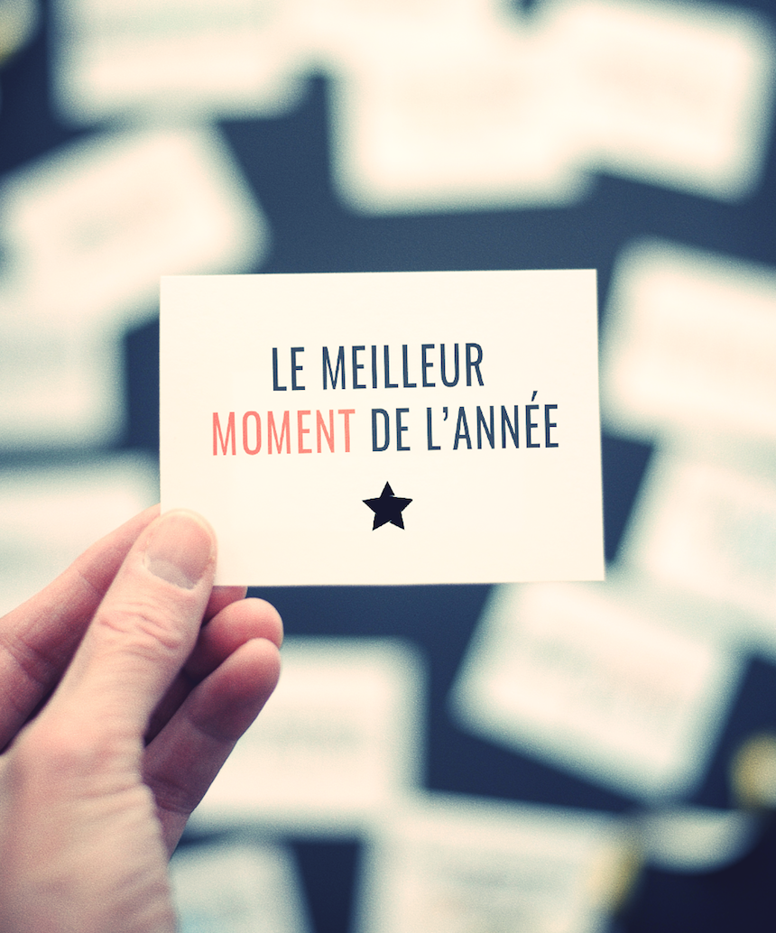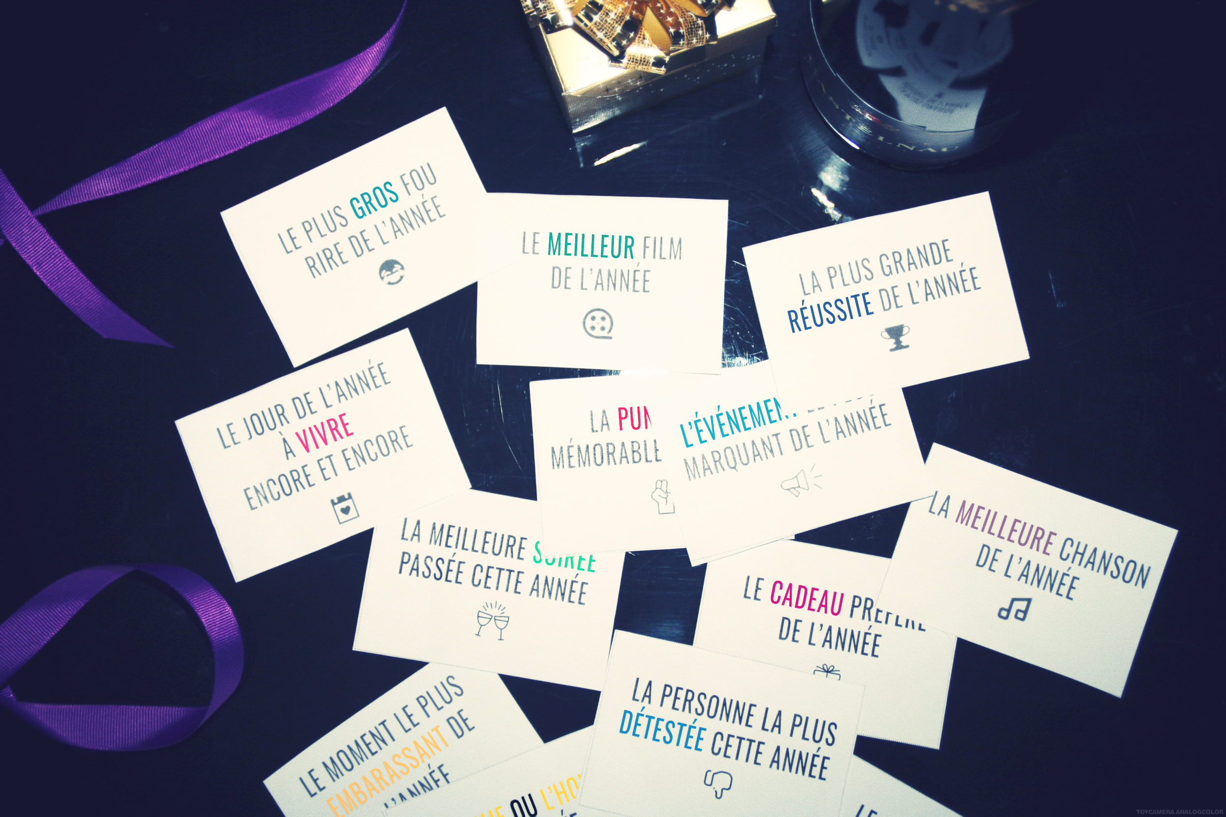 À Nouvel An, il y a de nombreuses façons de faire la fĂȘte. Du dĂźner avec quelques amis, à la sauterie oĂč presque personne ne se connait, en passant par la soirĂ©e avec sa famille… il existe une multitude de façon de passer Ă  la nouvelle annĂ©e. Peu importe le type de rĂ©veillon pour lequel vous aller opter, je vous propose un petit jeu simple, Ă  faire Ă  deux et plus. Ce jeu sera un excellent moyen de dĂ©buter la soirĂ©e et de lancer des conversations grĂące à des questions bilan sur l’annĂ©e Ă©coulĂ©e. Pas de bonne ou de mauvaise rĂ©ponse, juste un jeu pour patienter jusqu’à minuit sans s’ennuyer.