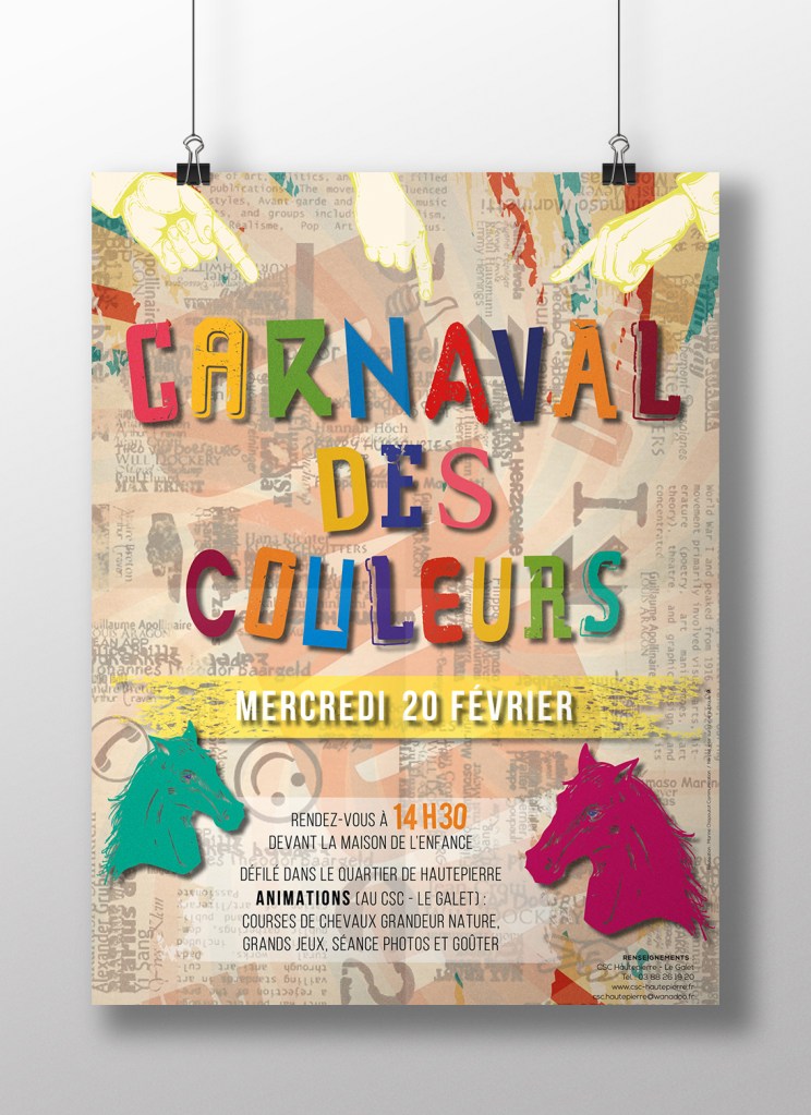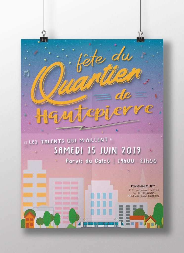 Le Centre Social et Culturel (CSC) Hautepierre – Le Galet m’a confié la création de plusieurs affiches et flyers pour différents événements du quartier : Carnaval de Hautepierre (2018 / 2019), Fête du Quartier et Vélo Santé Hautepierre.